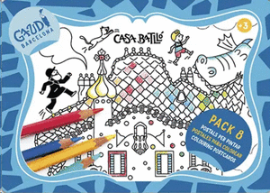 La Casa Batlló per pintar-la i gaudir-ne en petit format. Us presentem aquest pack de postals per jugar allà on siguis i enviar-ne el resultat als qui més testimes. Els petits de la casa es podran internar en el Món Gaudí a través duna de les seves obres més excepcionals: la Casa Batlló. Arquitectura, art, biologia, història, fauna, flora, astronomia No hi ha temàtica que el color no pugui abraçar i que la síntesi gràfica no pugui explicar. Una fusió perfecta de creativitat, diversió i aprenentatge!
